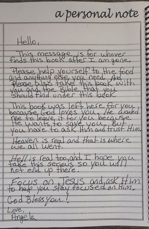 2 – Write a personal note on the very back page of the Emergency Guide to anyone who will find it after we are gone. And please pray that God will open the spiritual eyes of anyone who reads the Emergency Guide.
